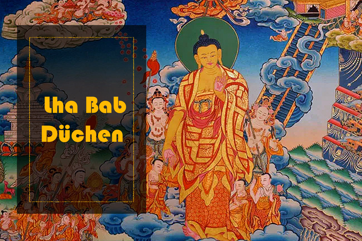 Lha Bab Düchen (lha babs dus chen) in Tibetan translates as "Festival of the Descent from Heaven" the fourth major Buddhist holiday occurs on the 22nd day of the ninth Tibetan lunar month.